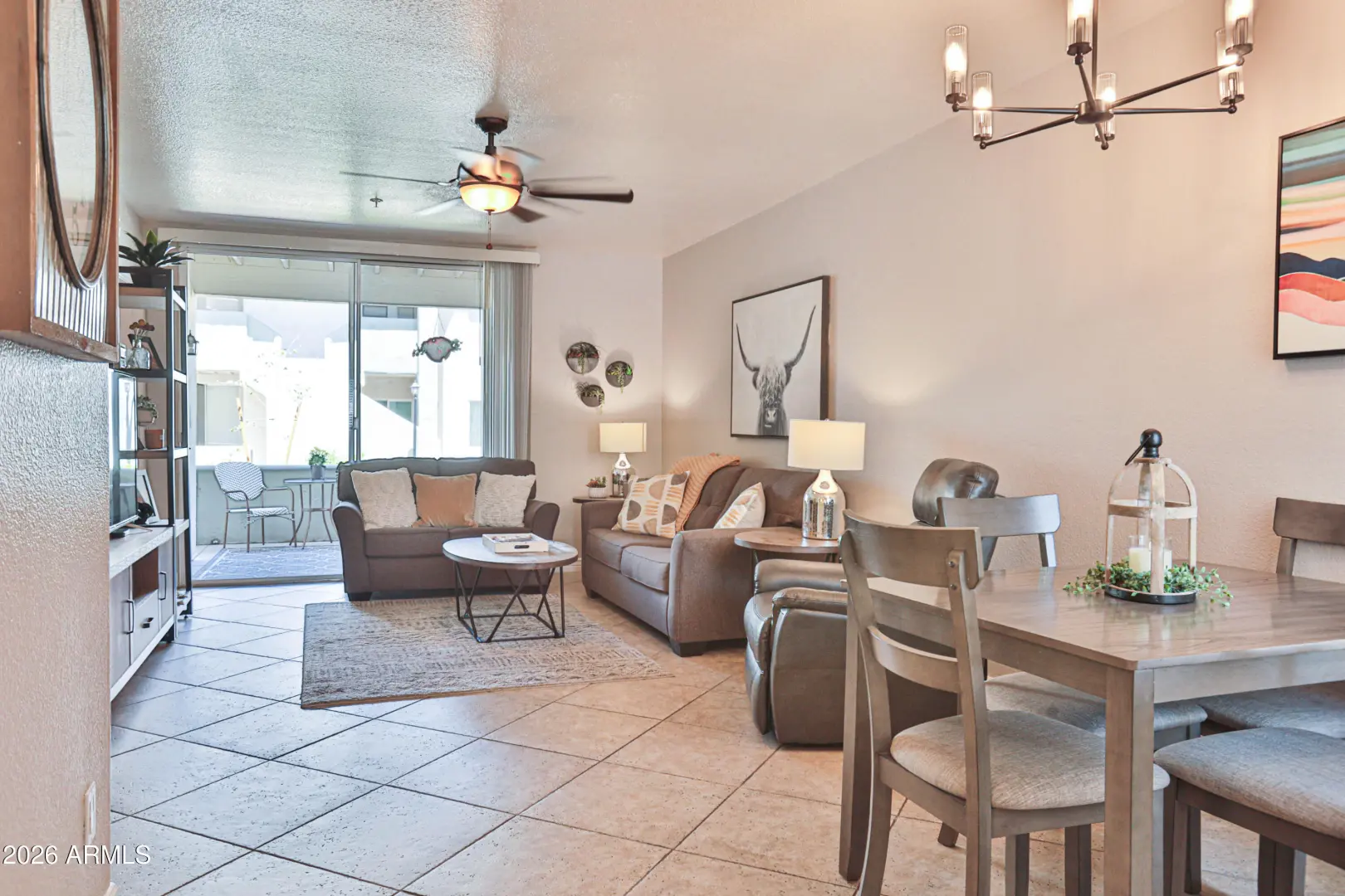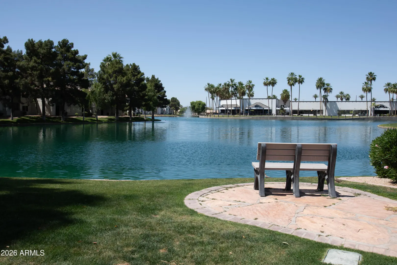 Beautiful 2-bedroom, 2-bath ground-level condo in the desirable Lakeshore at Anderson Springs community. Enjoy resort-style amenities including 3 pools, 2 spas, tennis and pickleball courts, clubhouse, and fitness center. Lake and fountain views from the guest bedroom and kitchen. Open living and dining area leads to a spacious private patio with lush green views. Kitchen features granite countertops and stainless-steel appliances. Primary suite includes a walk-in closet and en-suite bath. Split floor plan offers privacy. Assigned covered parking nearby. Close to Sprouts, Whole Foods, Chandler Fashion Center, and easy access to Loop 101 & 202.