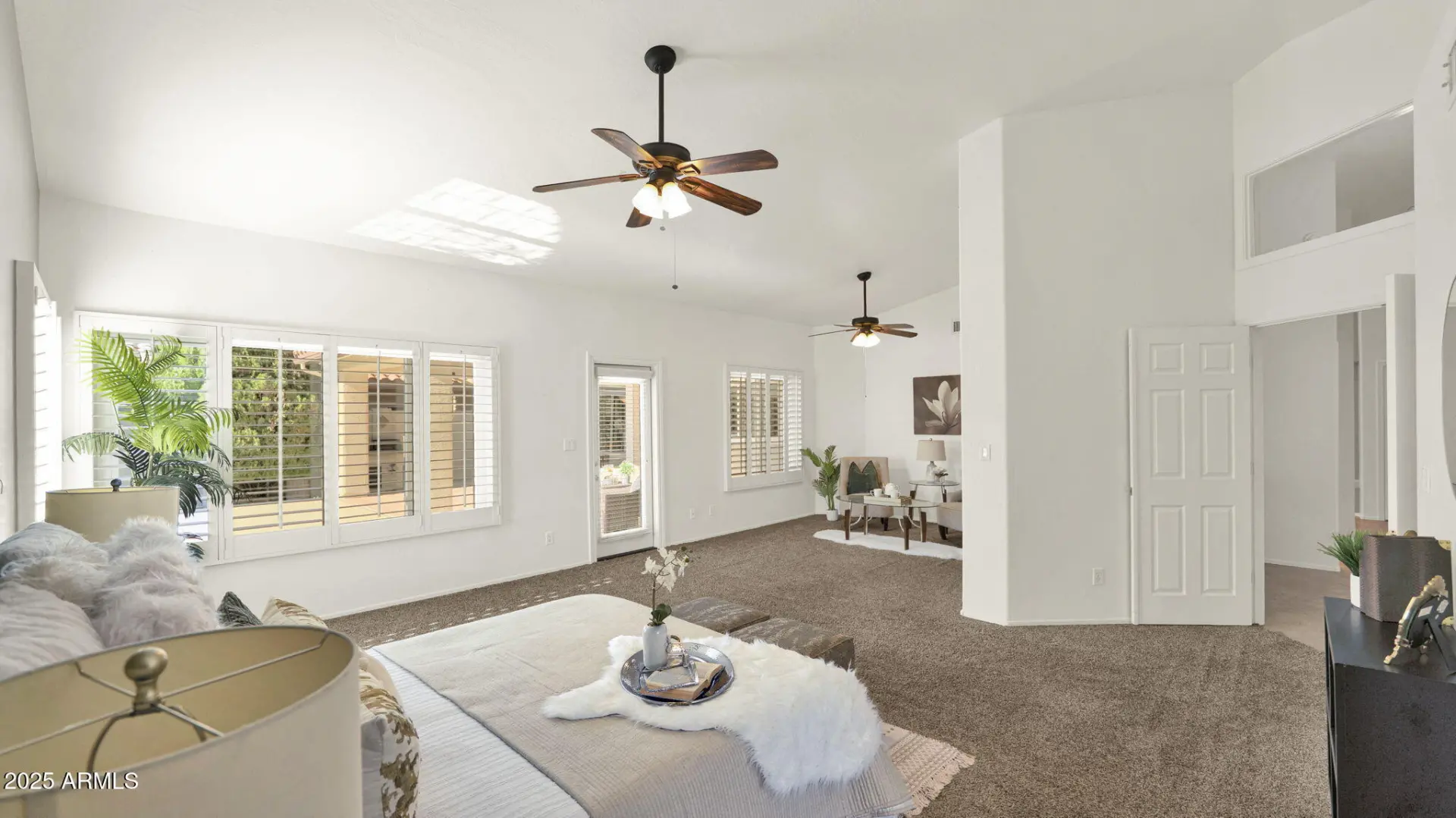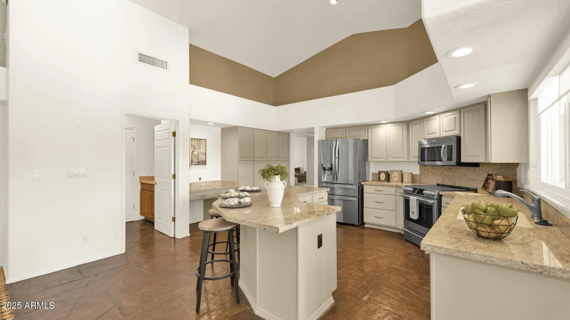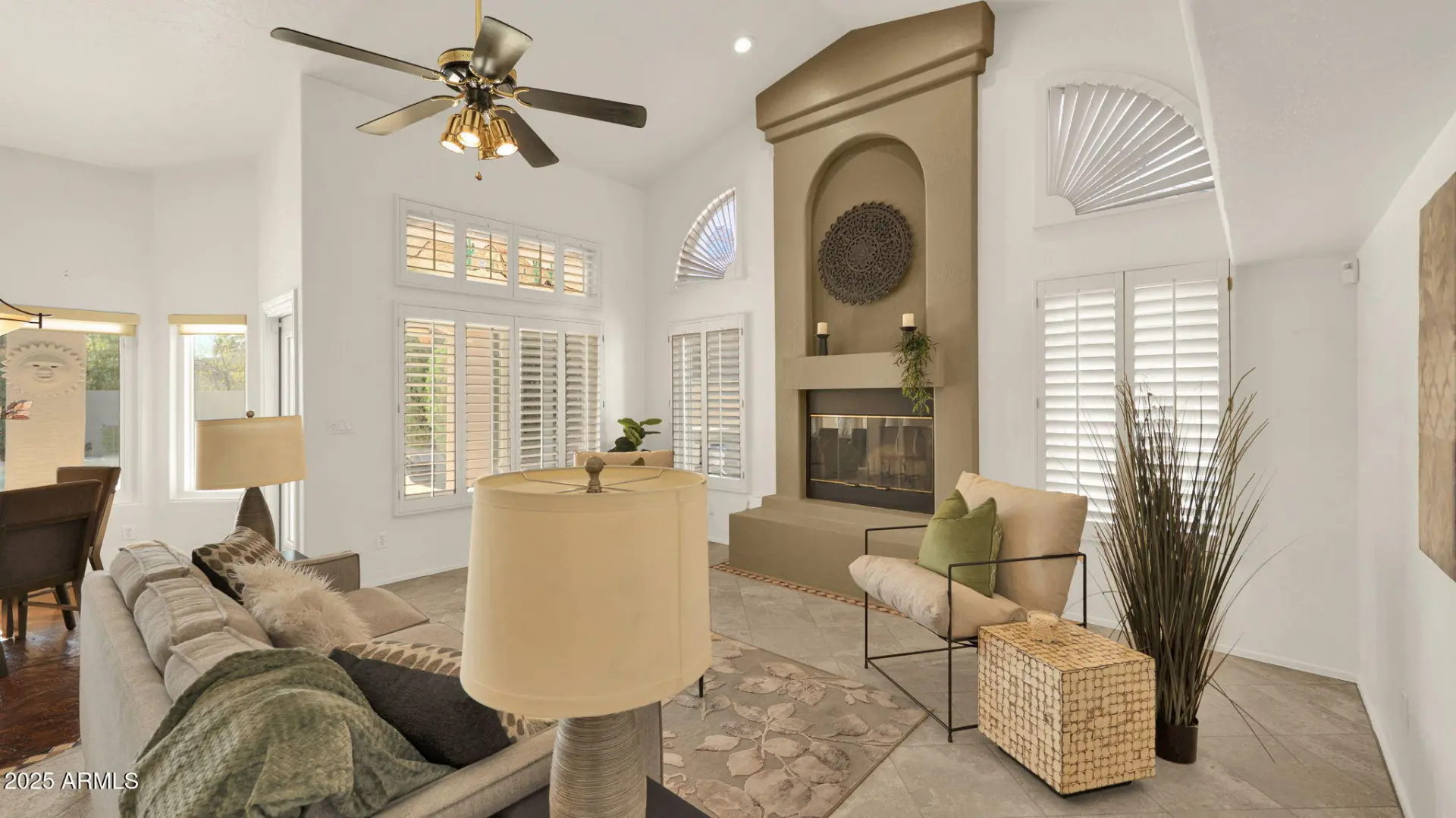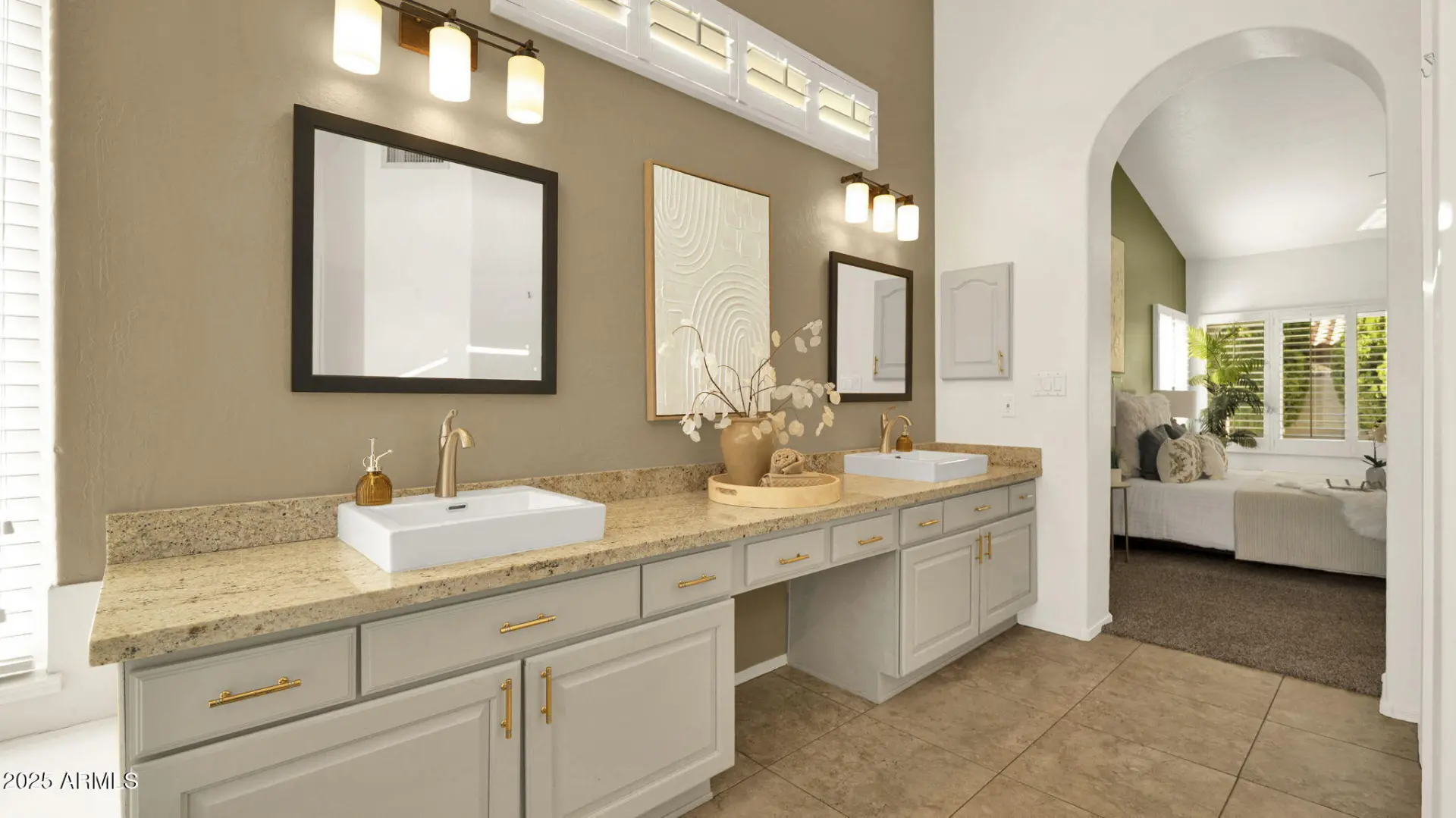 Welcome home to your Ahwatukee retreat—where major system upgrades, thoughtful care, and relaxed desert living come together beautifully. This single-level home offers a bright, open layout with vaulted ceilings and generous natural light flowing through the great room, kitchen, and family areas. The kitchen is designed for easy everyday living with granite counters, updated lighting, and stainless steel appliances—including a French door refrigerator with deli drawer and glass-top range. A breakfast bar opens directly to the family room, and both spaces enjoy beautiful views of the pool and backyard. All bedrooms are arranged along the same hallway for a comfortable, cohesive flow. The primary suite has an expanded design created in place of a fourth bedroom for a private sitting