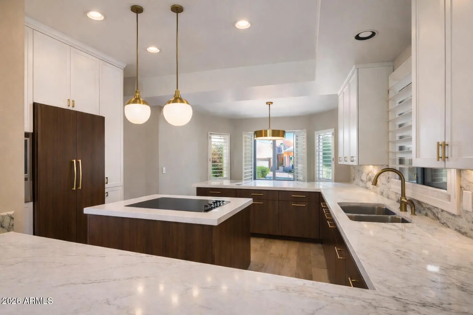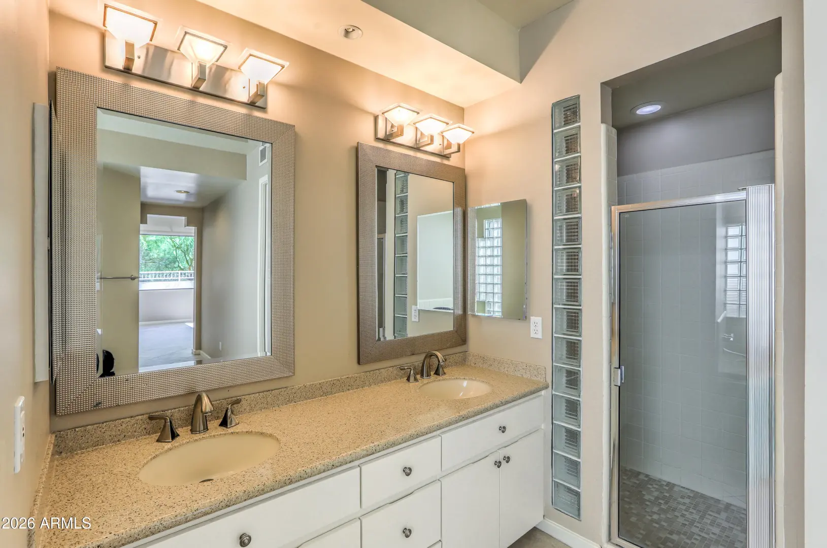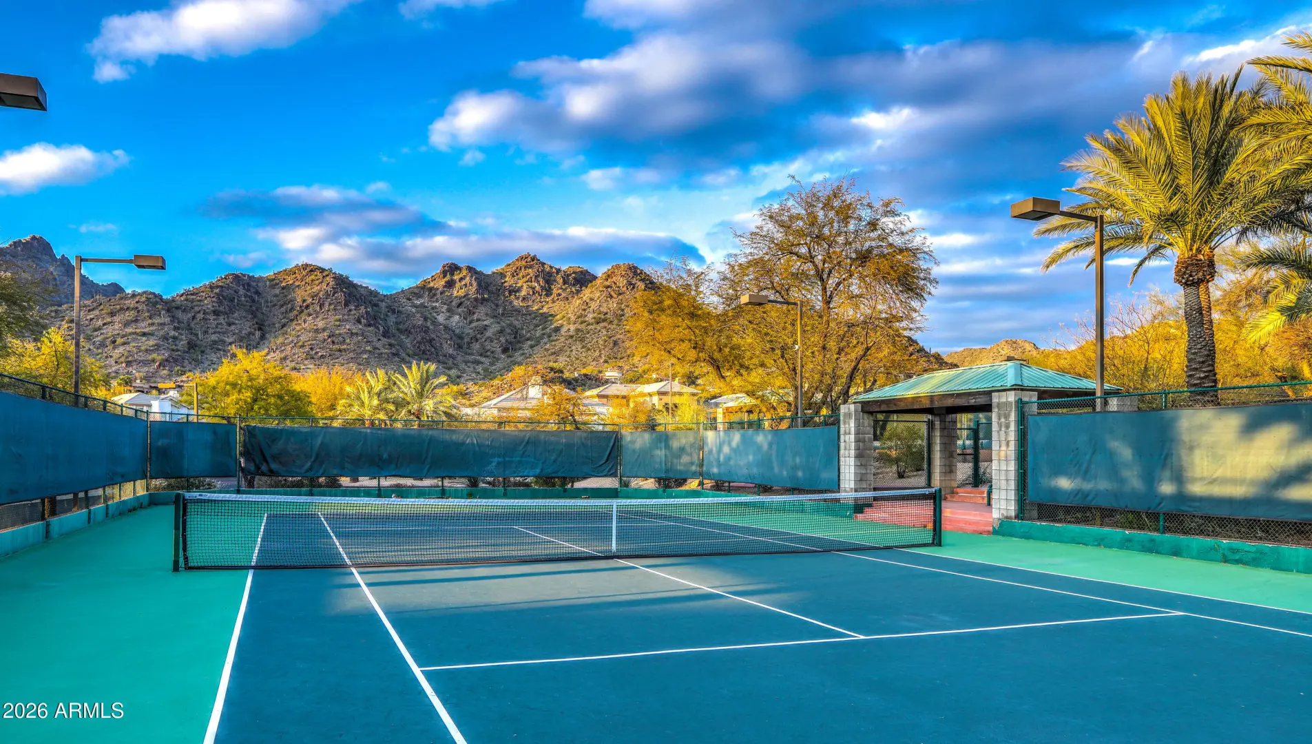 Nestled in the desirable Biltmore Hillside Villas, this home backs to a serene preserve, showcasing breathtaking views of Piestewa Peak. Soaring ceilings and expansive windows flood the home with natural light, creating a seamless connection between indoor and outdoor living. This 2-bedroom/2.5-bath residence offers recently installed TRANE A/C unit + painted exterior and a split floorplan featuring two ensuite bedrooms. The great room is anchored by a dramatic floor-to-ceiling fireplace, while a spacious formal dining room opens to the living area with north-facing views. A charming breakfast nook with bay windows captures bright southern sunlight. Both dining spaces frame the kitchen, providing an exceptional opportunity for customization and transformation. Bring your vision!