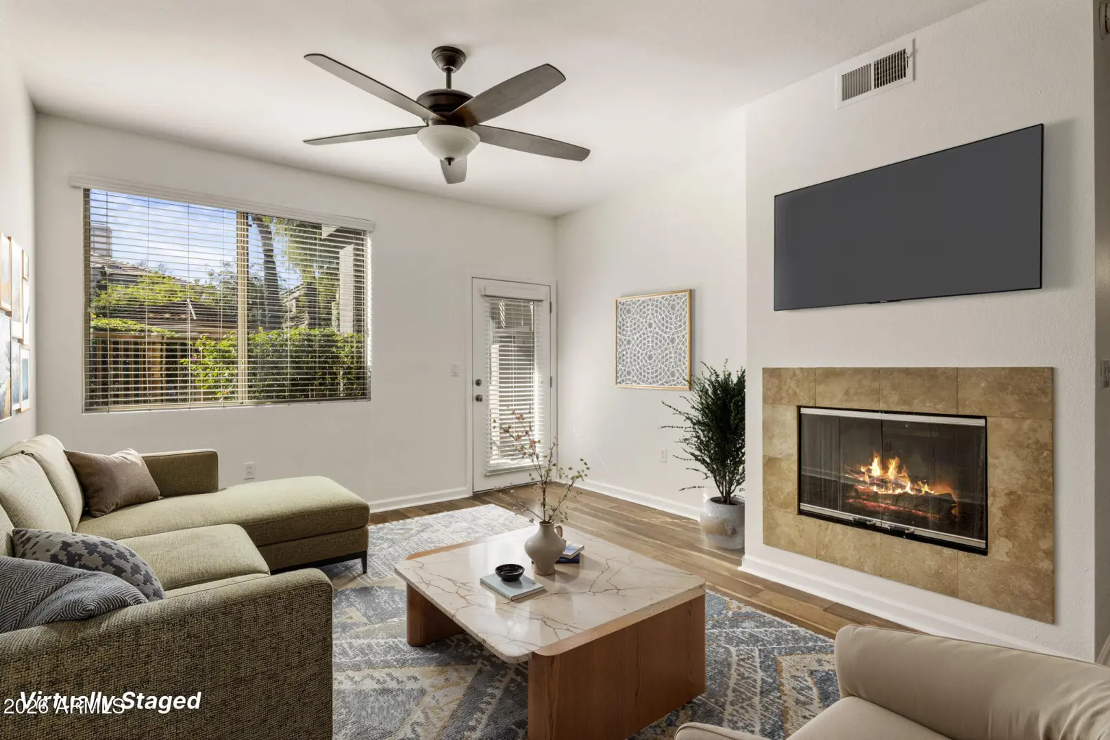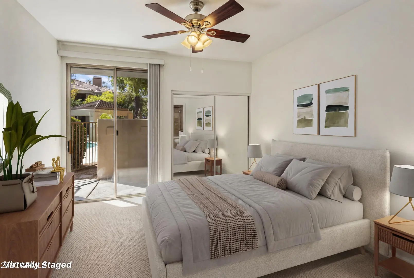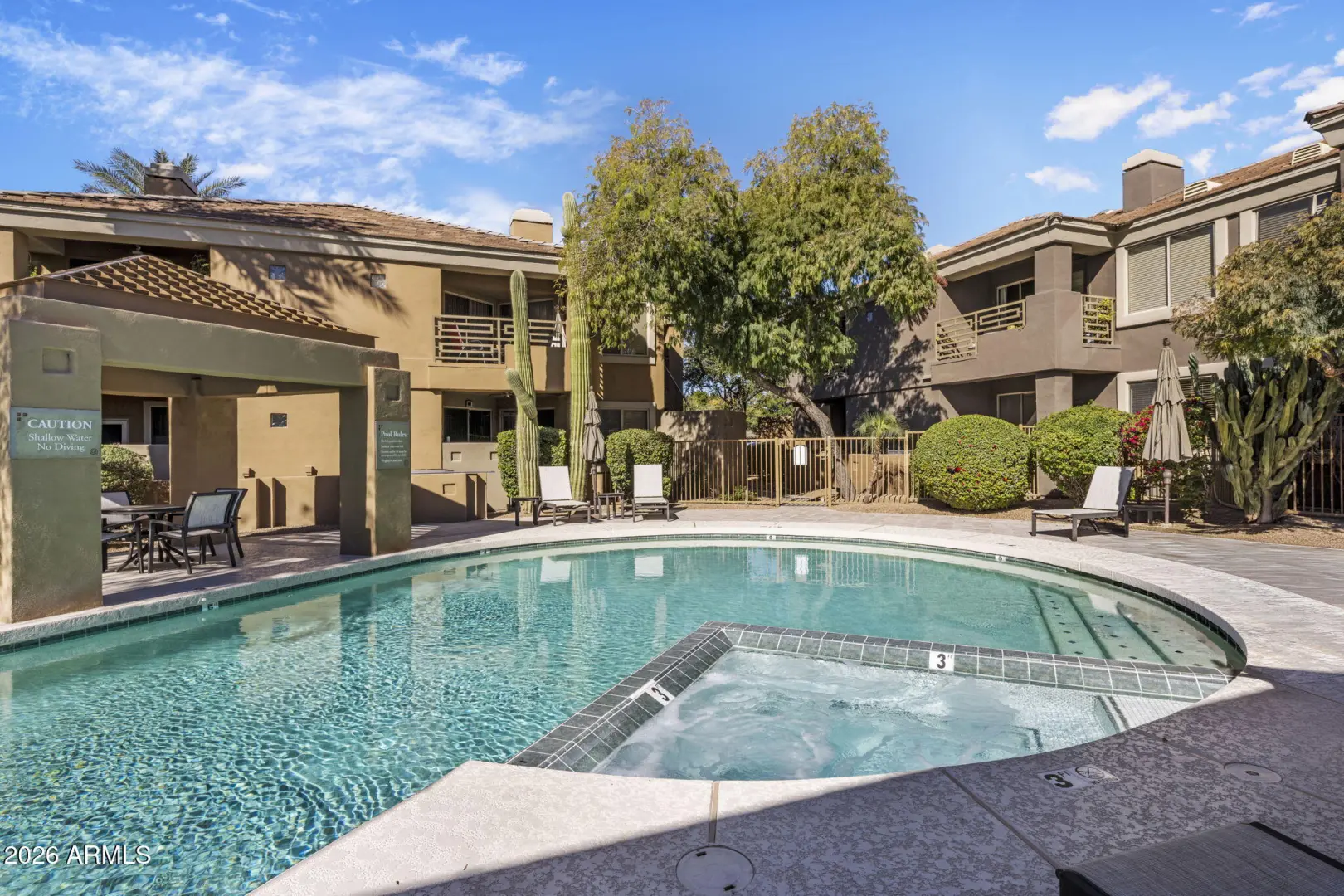 Welcome to this beautifully maintained 1 bed, 1 bath condo in The Pavilions. This highly desirable, meticulously maintained, GATED COMMUNITY is in the heart of Arcadia Lite. This FIRST-LEVEL unit offers the convenience of NO STAIRS & an ATTACHED ONE-CAR GARAGE WITH DIRECT ACCESS. Enjoy a bright & inviting floor plan featuring a spacious living area & gas fireplace. The kitchen boasts granite countertops & stainless steel appliances (refrigerator included). The SOUTH-FACING PATIO overlooks the sparkling community pool, while surrounding mature landscaping provides exceptional patio privacy. Recent updates include fresh interior paint & brand-new carpet in the bedroom, making this home MOVE-IN READY. Resort living: The Pavilions has a heated pool, spa, clubhouse & resident wine lockers.