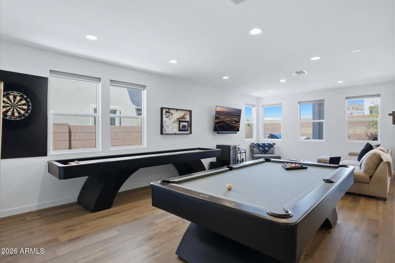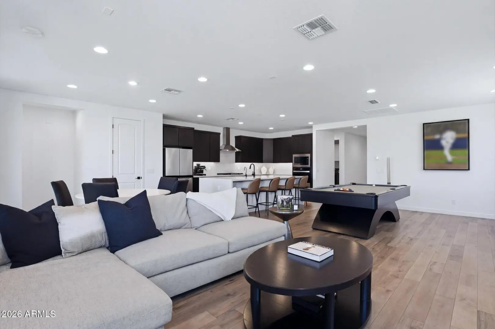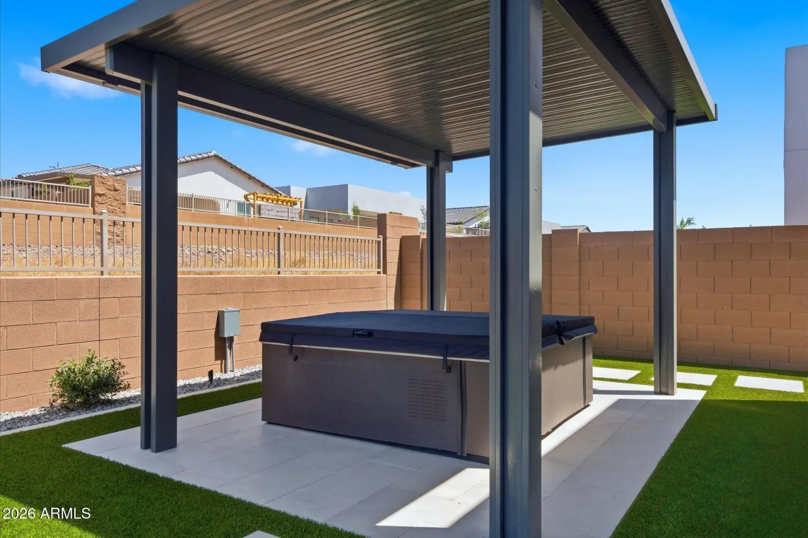 Better than new, this Shea Homes residence in Ascent at Aloravita showcases ~$95K in upgrades and a designer backyard built for entertaining. Enjoy lush, low-maintenance turf, a built-in gas BBQ with Evo grill, and a shaded gazebo--ideal for outdoor dining. Inside, the bright open-concept kitchen and great room feature a dramatic waterfall-edge island, upgraded appliances, and effortless flow for gatherings. Custom window shades throughout add style and convenience. The private primary suite offers a spacious walk-in closet, oversized walk-in shower, and dual sinks. Split plan includes two bedrooms, full bath, and powder room. Three-car tandem garage prewired for EV.