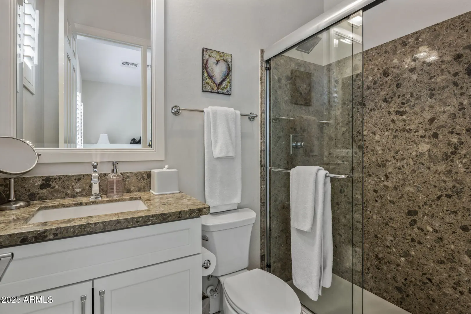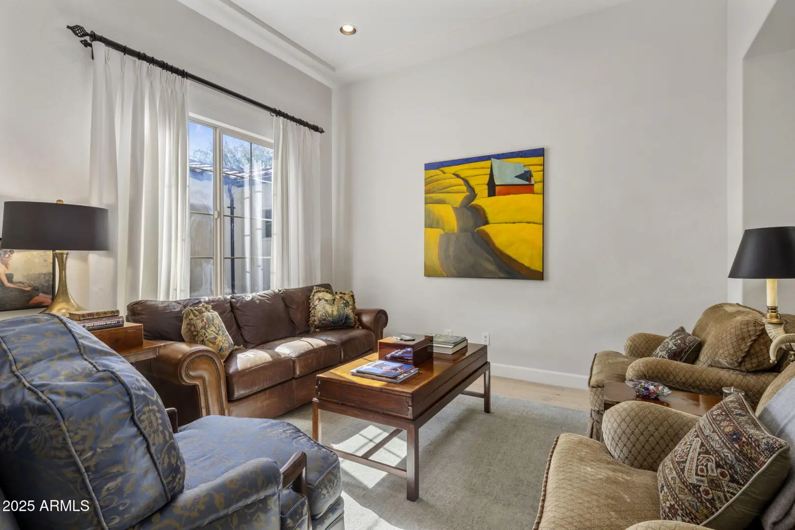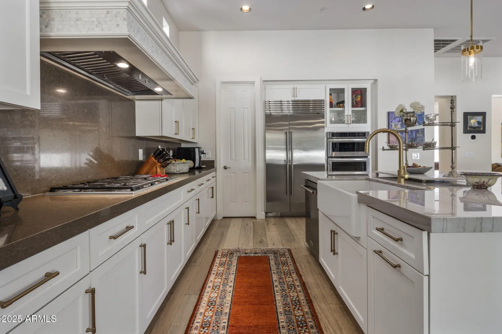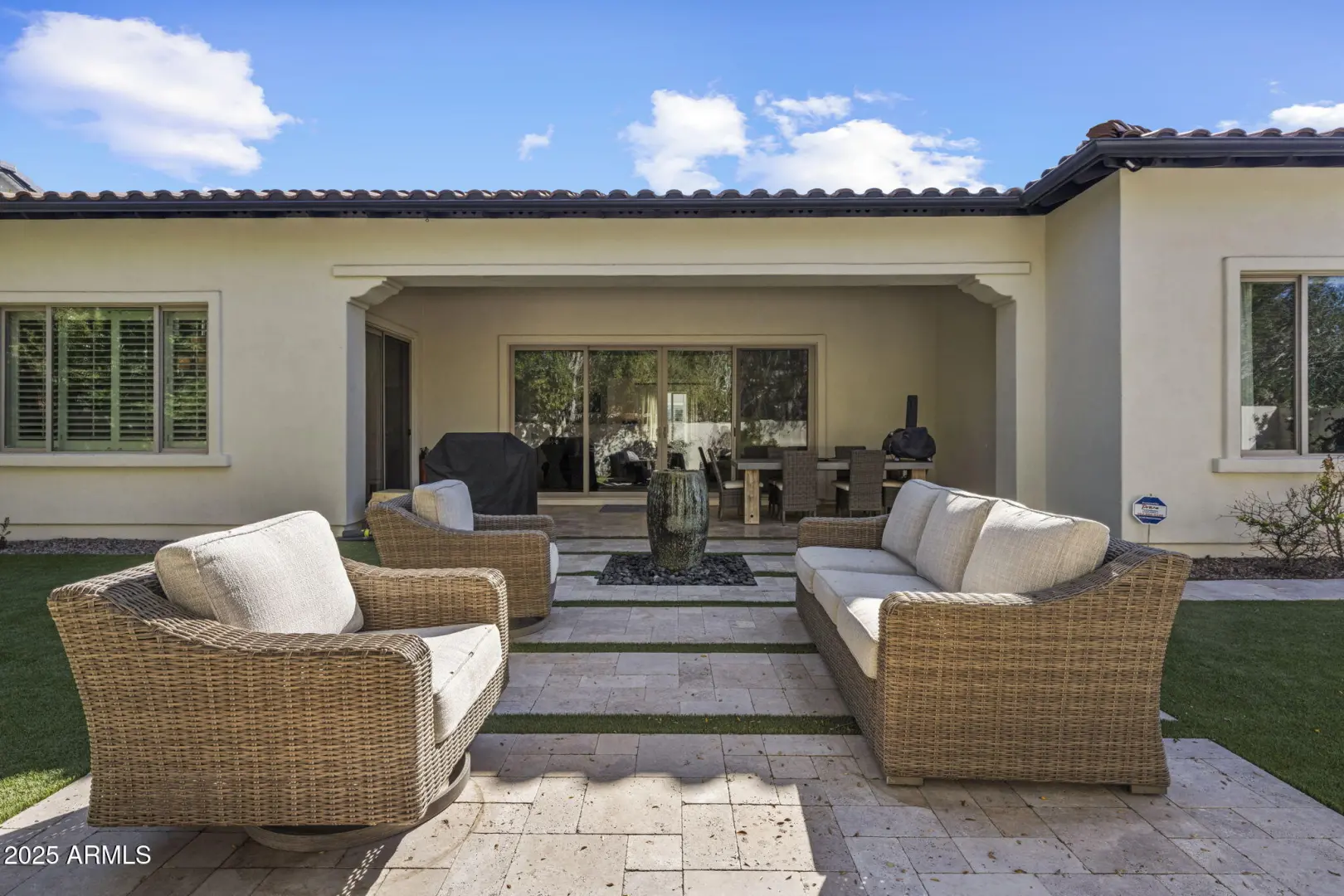Nestled within a desirable gated neighborhood just minutes from Old Town Scottsdale, this stunning 4-bedroom, 3.5-bathroom single-level home offers the perfect blend of comfort, style, and convenience. Built in 2013, this residence has been thoughtfully updated over the past three years, showcasing modern finishes and high-end upgrades throughout. Step inside to find a spacious, open-concept floor plan ideal for entertaining and everyday living. Chef's kitchen features Wolf range, Sub Zero fridge/freezer, Meile wine refrigerator, custom cabinetry, a large island with seating, and elegant stone countertops. The inviting living and dining areas flow seamlessly to the private backyard complete with a covered patio. There is also a 3 car tandem garage with plenty of storage.